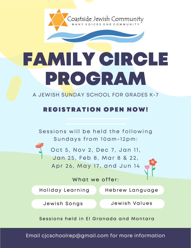 Our Family Circle Program began Sunday, October 5th! Posted on October 2, 2025November 11, 2025 by Laura Class is taught by Rabbi Moshe and occasionally features musical education by Elana Ron of Tkiya. Click here to register. Click here to pay the tuition. Scholarships are available; just email Rachael.